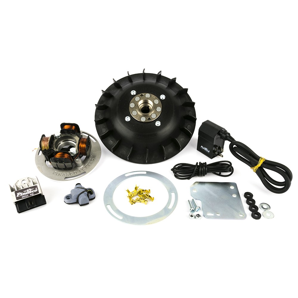 L'accensione ad anticipo variabile PINASCO FLYTECH è frutto di innumerevoli ricerche e sviluppi volti a realizzare un prodotto di altissima qualità affidabile e duraturo nel tempo. Il Volano PINASCO FLYTECH è stato realizzato con differenti pesi per tutti i modelli di Vespa VNB-GT-LML-COSA-SPRINT-PX-GS-FARO BASSO. I pesi dei volani sono di 0.9kg, 1.1kg, 1.4kg, 1,6kg e 1,8kg, con l'aggiunta della ventola Pinasco ricavata dal pieno o in fusione è possibile aumentare il peso di altri 0.2kg.