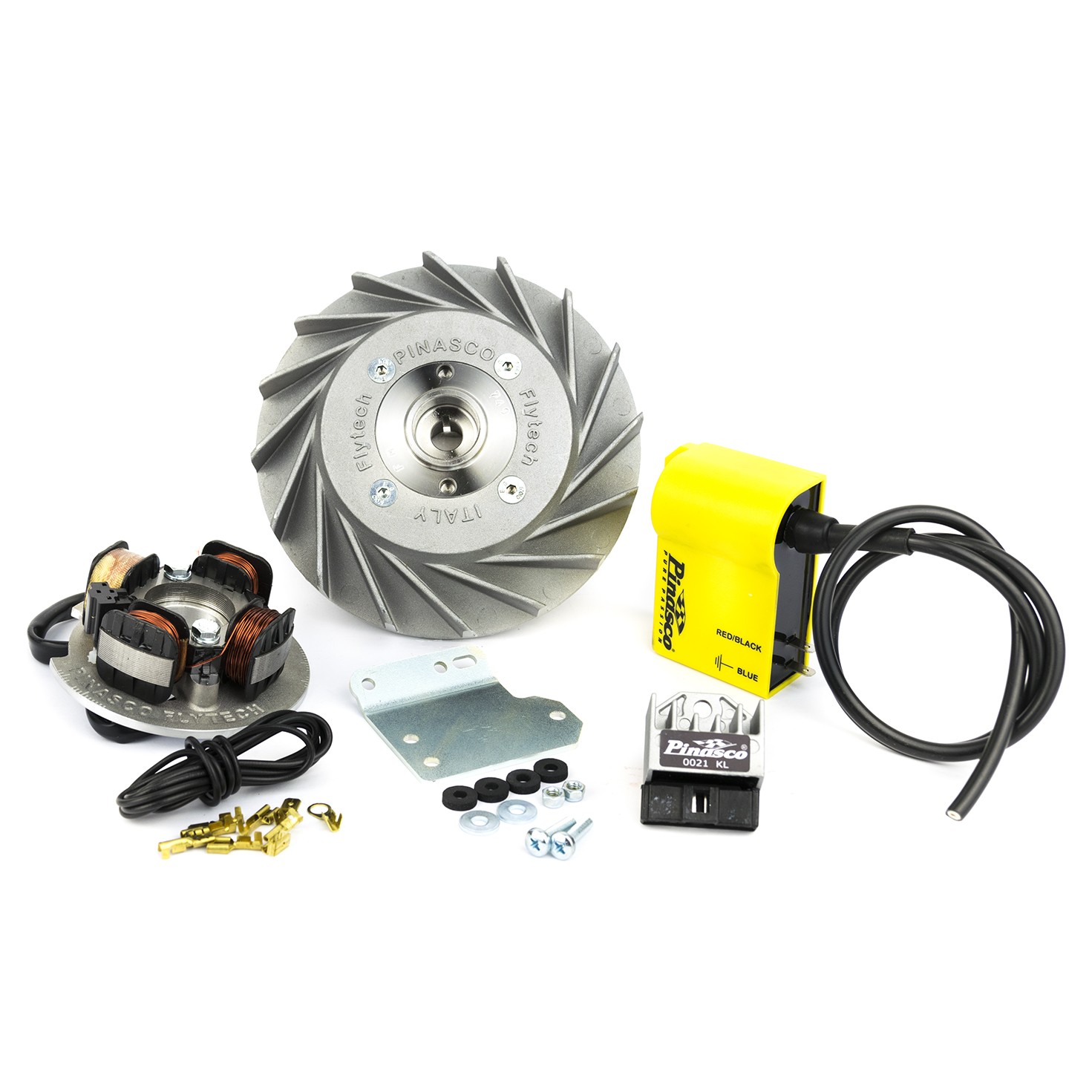 L'accensione Flytech Touring è caratterizzata da una ventola in fusione simile all'originale che mantiene inalterato il design della Vespa, è equipaggiata di centralina ad alto voltaggio "Sparkey" e, in alcuni modelli specifici, fornita con rotori lavorati a controllo numerico ricavati dal pieno.