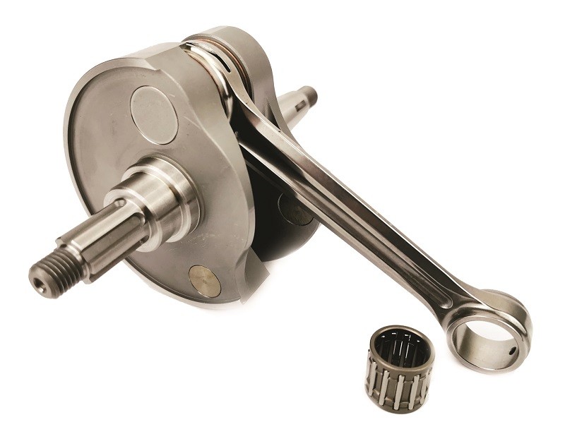 Albero motore Factory corsa 62 mm, biella 130 mm, specifico per carter Slave Pinasco e carter Piaggio con inserti in tungsteno e calettatura specifica per frizione Bull Clutch Pinasco.