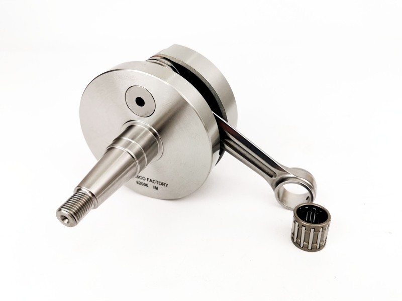 Albero motore Factory corsa 57 mm, biella 110 mm, specifico per carter Slave Pinasco e carter Piaggio con inserti in tungsteno e calettatura specifica per frizione Bull Clutch Pinasco.