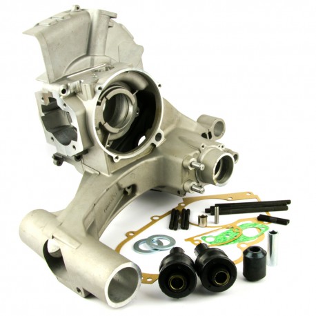 Realizzato in pressofusione, il nuovo carter motore Pinasco per Vespa Large è la punta di diamante della produzione, realizzati in 2 modelli distinti, Master con valvola rotante e Slave con aspirazione lamellare, sono notevoli le migliorie apportate al modello originale, tra le quali: