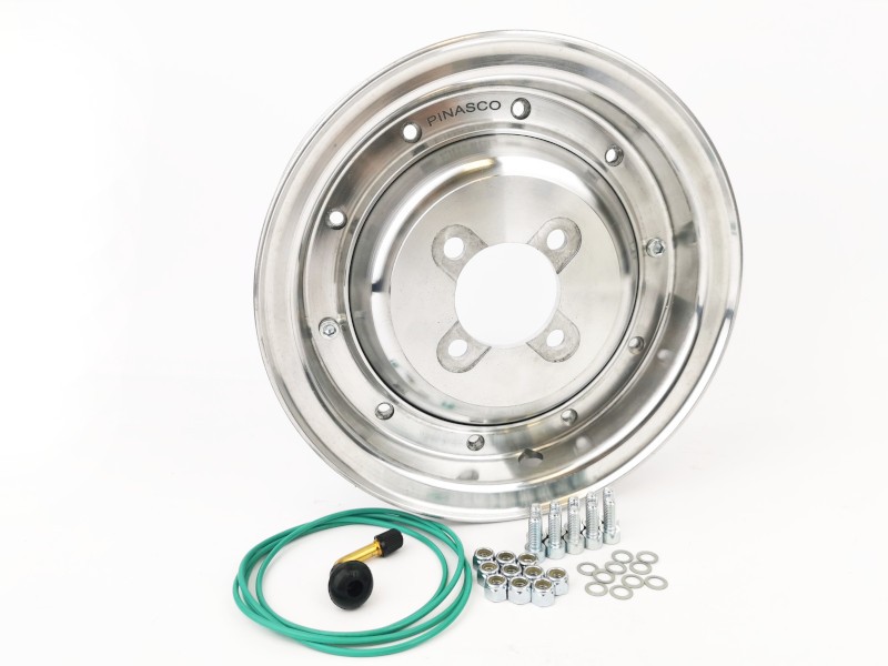 Cerchio ruota in lega leggera tubeless scomponibile, cioè con la possibilità di essere aperto per la sostituzione del pneumatico, per tutte le Vespa con ruote 8". Il cerchio Tubeless Scomponibile Pinasco ha un canale 2.10 perfettamente centrato al telaio Vespa così da mantenere il massimo della stabilità sia sulle Vespa Old.