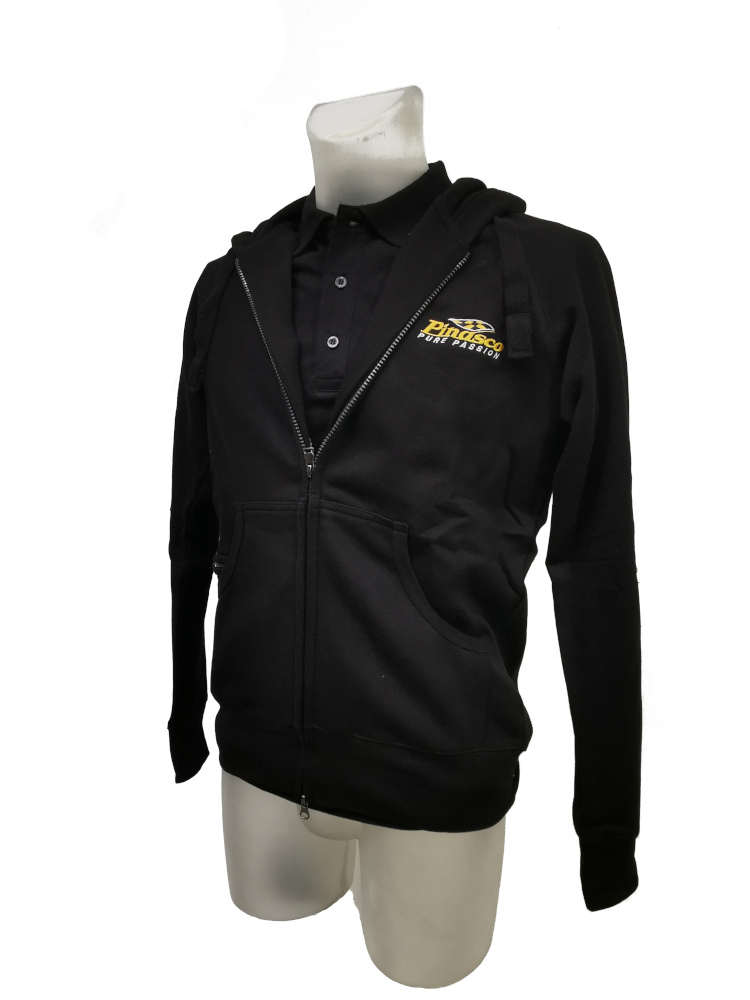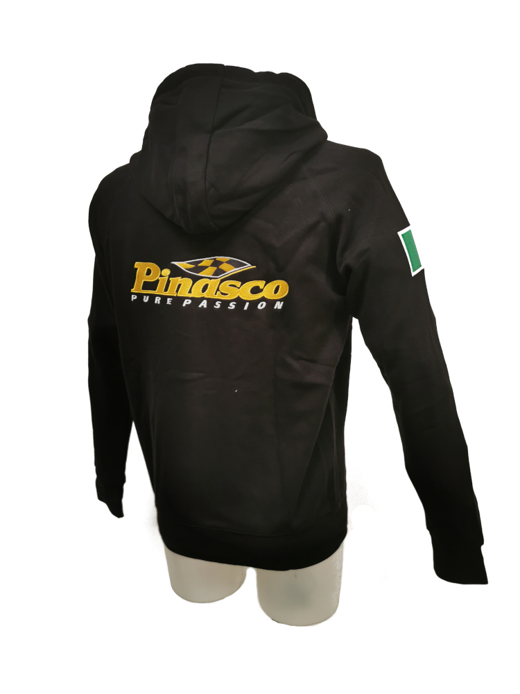 Felpa ufficiale della "Scuderia Pinasco" con logo ricamato, in cotone di altissima qualità, cappuccio felpato, ricamata fronte e retro con logo a spessore, bandiaera italiana su manica destra, comoda chiusura a cerniera e ampie tasche ai lati.