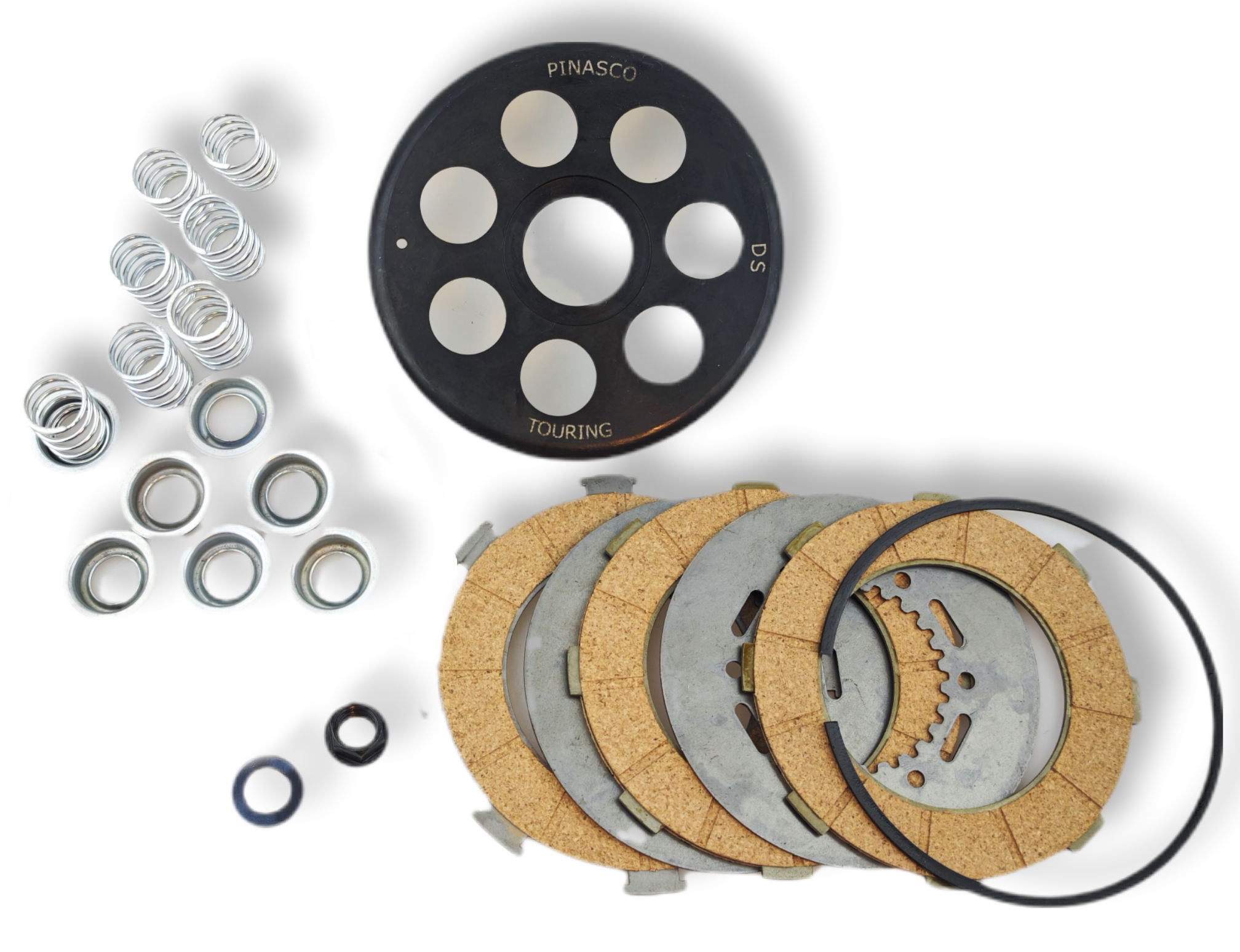 Il kit Pinasco Power Clutch raccoglie tutti i componenti Pinasco dedicati alle frizioni per Vespa Large Frame in un unico e completo kit intercambiabile al 100% con l'originale.