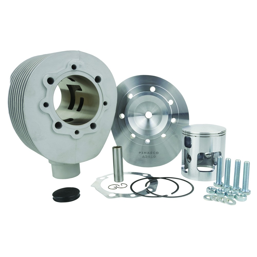 Il gruppo termico 215cc in alluminio 6 travasi è specifico per il montaggio con alberi motore corsa 57mm. I gruppi termici corsa lunga vengono forniti con la testa specifica. I cilindri sono realizzati in lega di alluminio con riporto al Nicasil che conferisce una robustezza eccezionale ed una resistenza unica garantendo prestazioni superiori a tutti i regimi di utilizzo.