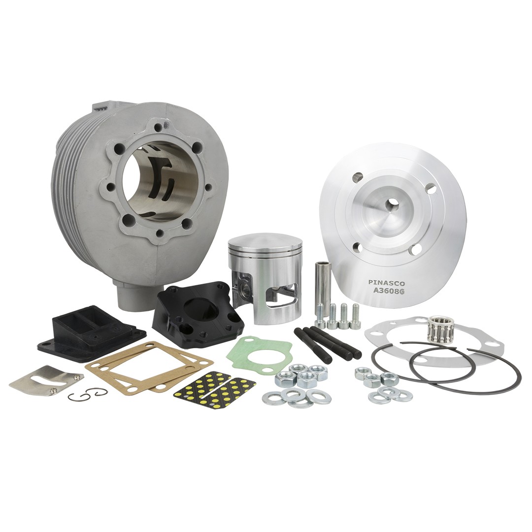 Il Gruppo termico 225cc in alluminio con trattamento superficiale al Nikasil, nato sulla base del collaudato gruppo termico per Vespa PX200, è il kit che mancava agli appassionati della Vespa GS160 e SS180. Perfettamente intercambiabile all'originale, ha un collettore in alluminio ricavato dal pieno con ammissione lamellare, che permette il montaggio del carburatore originale o del carburatore classico SI fino al diametro da 28mm, coppia e potenza massima migliorano sensibilmente.