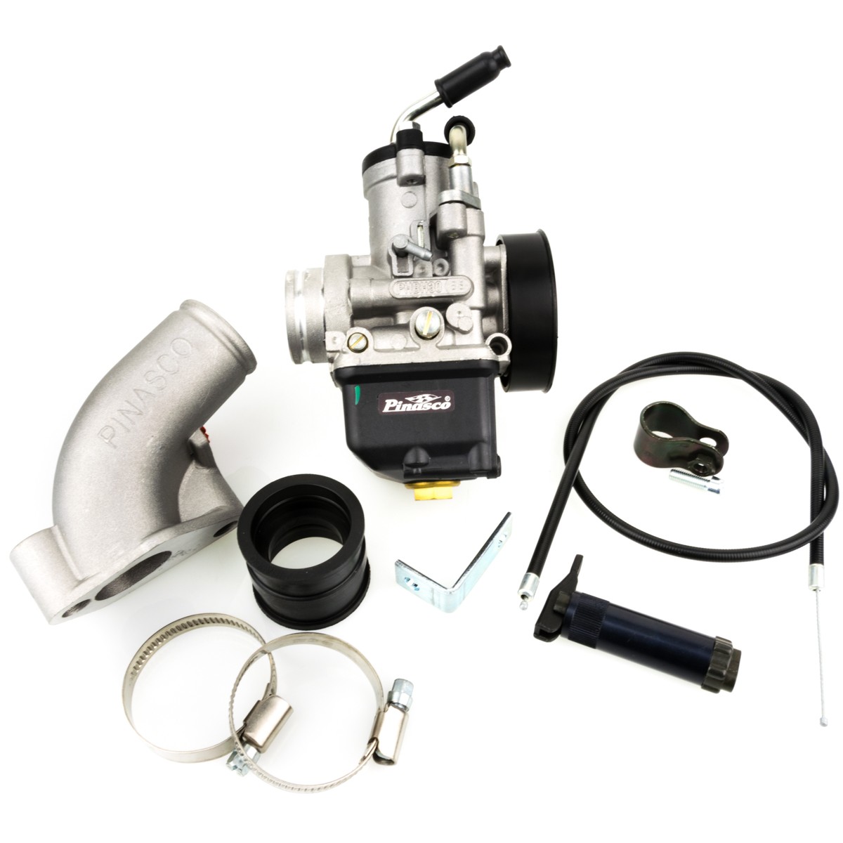 Impianto alimentazioni con carburatori da 28 e 30 mm, adatti a tutti gli scooter elaborati. Vengono forniti con tutti gli accessori per il montaggio e gitarati per ogni Vespa.