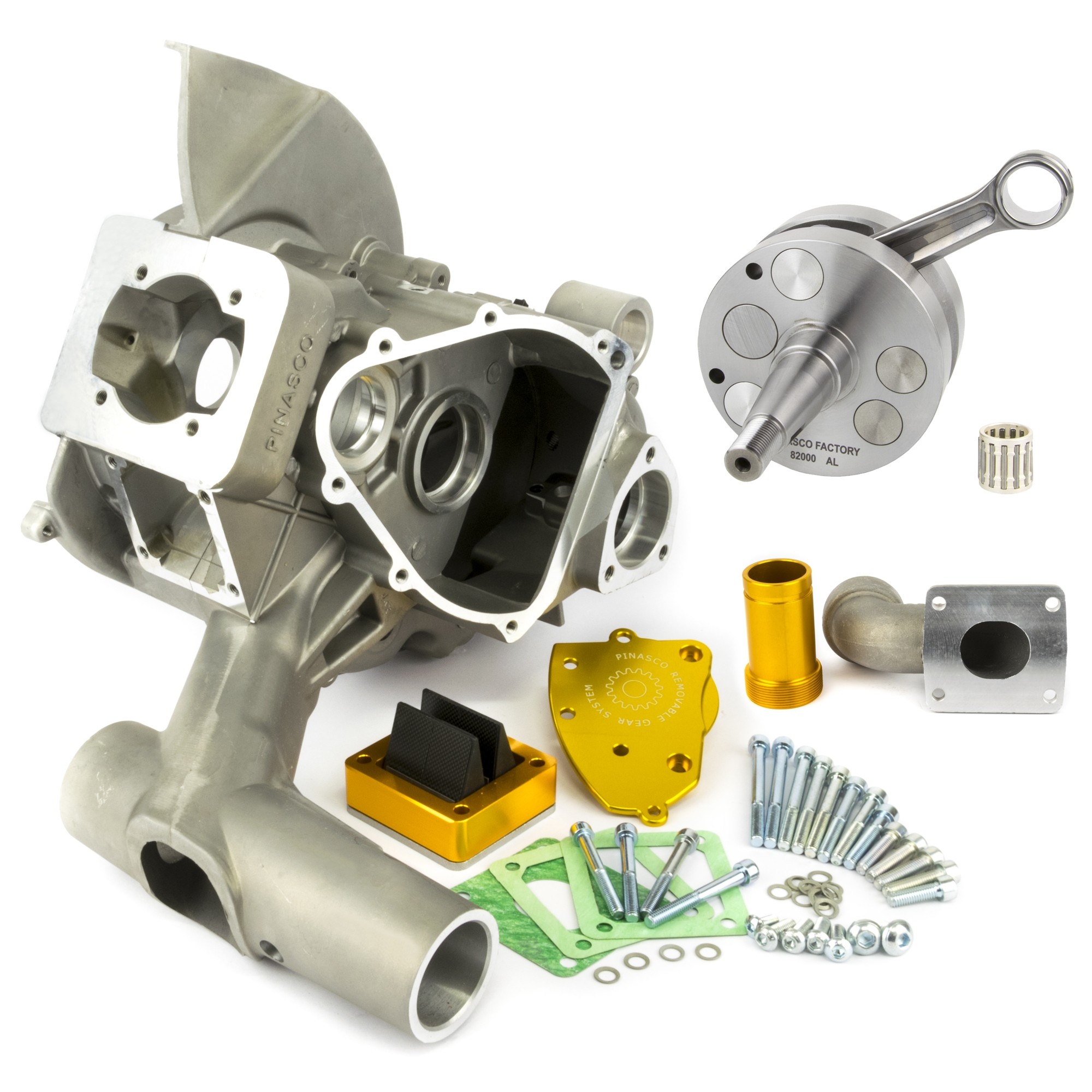 Il carter motore Pinasco per Vespa Small permette il montaggio di tutti i gruppi termici e scarichi sportivi per Vespa presenti sul mercato senza modifiche particolari.
