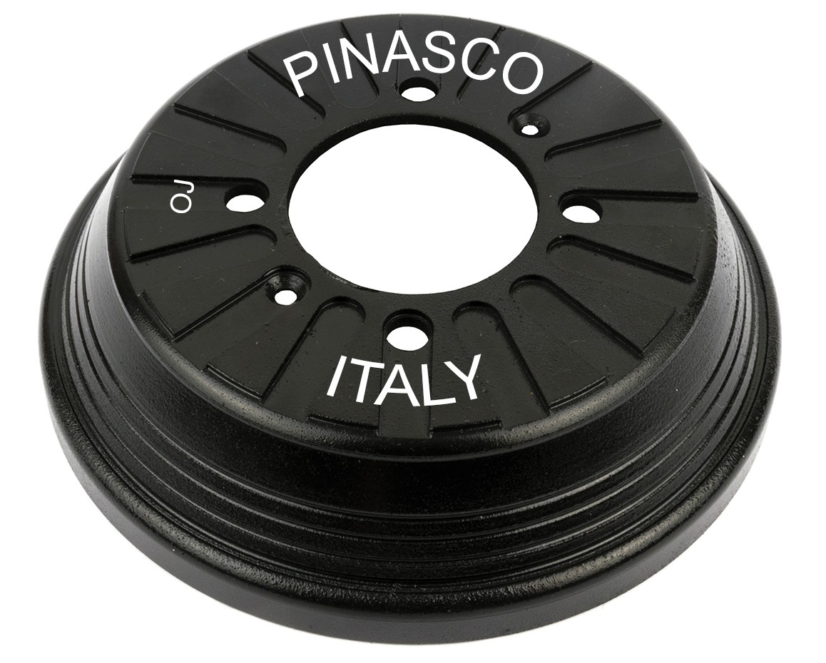 Rispetto ai tamburi freno tradizionali in fusione, il tamburo freno Pinasco è realizzato con macchine a controllo numerico utilizzando i migliori acciai torniti. Grazie all'esclusivo design e rigidità torsionale garantisce un aumento considerevole della potenza di frenata, le scanalature perimetrali aumentano la dissipazione del calore, le fresature sul piano di appoggio della ruota invece diminuiscono la superficie di contatto e quindi la trasmissione del calore al cerchio, principale causa di foratura.