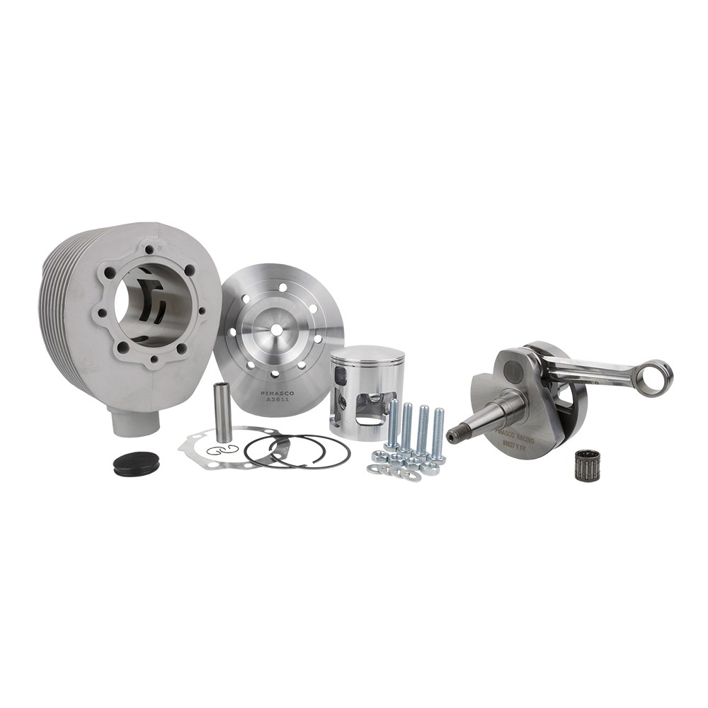 Il gruppo termico 225cc in alluminio 6 travasi è specifico per il montaggio con alberi motore corsa lunga 60mm. I gruppi termici corsa lunga vengono forniti con la testa specifica. I cilindri sono realizzati in lega di alluminio con riporto al Nicasil che conferisce una robustezza eccezionale ed una resistenza unica garantendo prestazioni superiori a tutti i regimi di utilizzo.