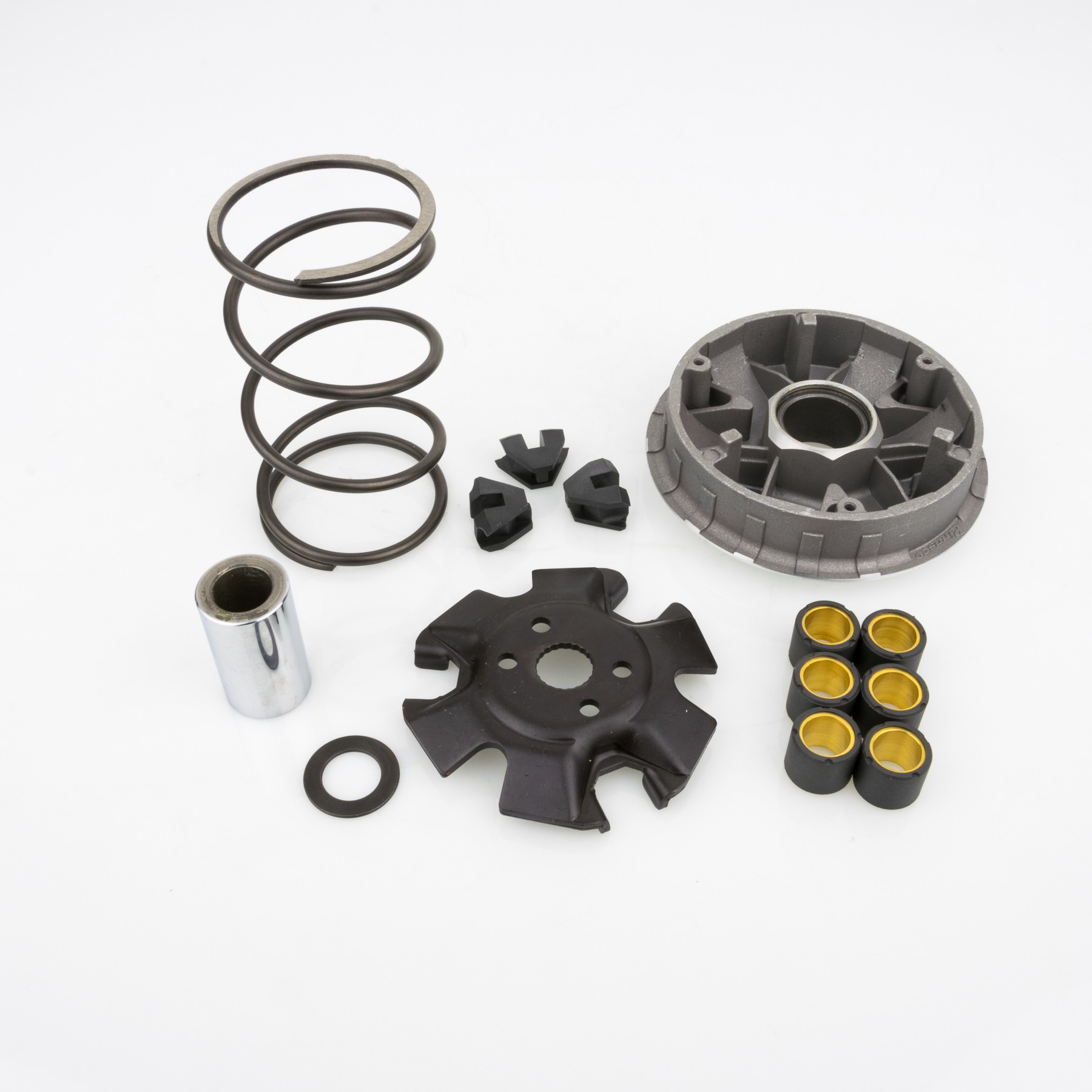 Frutto della raffinata tecnologia Pinasco, questi variatori permettono di incrementare l’escursione complessiva rispetto ai componenti di serie, migliorando notevolmente la funzionalite le prestazioni degli scooter. Disponibili per tutti gli scooter da 50 a 500 cc. B-LOCK l’esclusivo sistema di montaggio della bronzina di scorrimento mozzo variatore, principalmente sui variatori per maxi scooter, effettuato senza nessun tipo di deformazione della stessa. Con l’impiego di questa tecnologia, oltre ad avere un perfetto accoppiamento senza rischi di rottura o fuoriuscita, la bronzina mantiene le sue dimensioni iniziali, garantendo costanza di prestazioni a caldo e nell’uso intensivo, assicurando una durata nel tempo superiore anche a quella dei variatori originali.