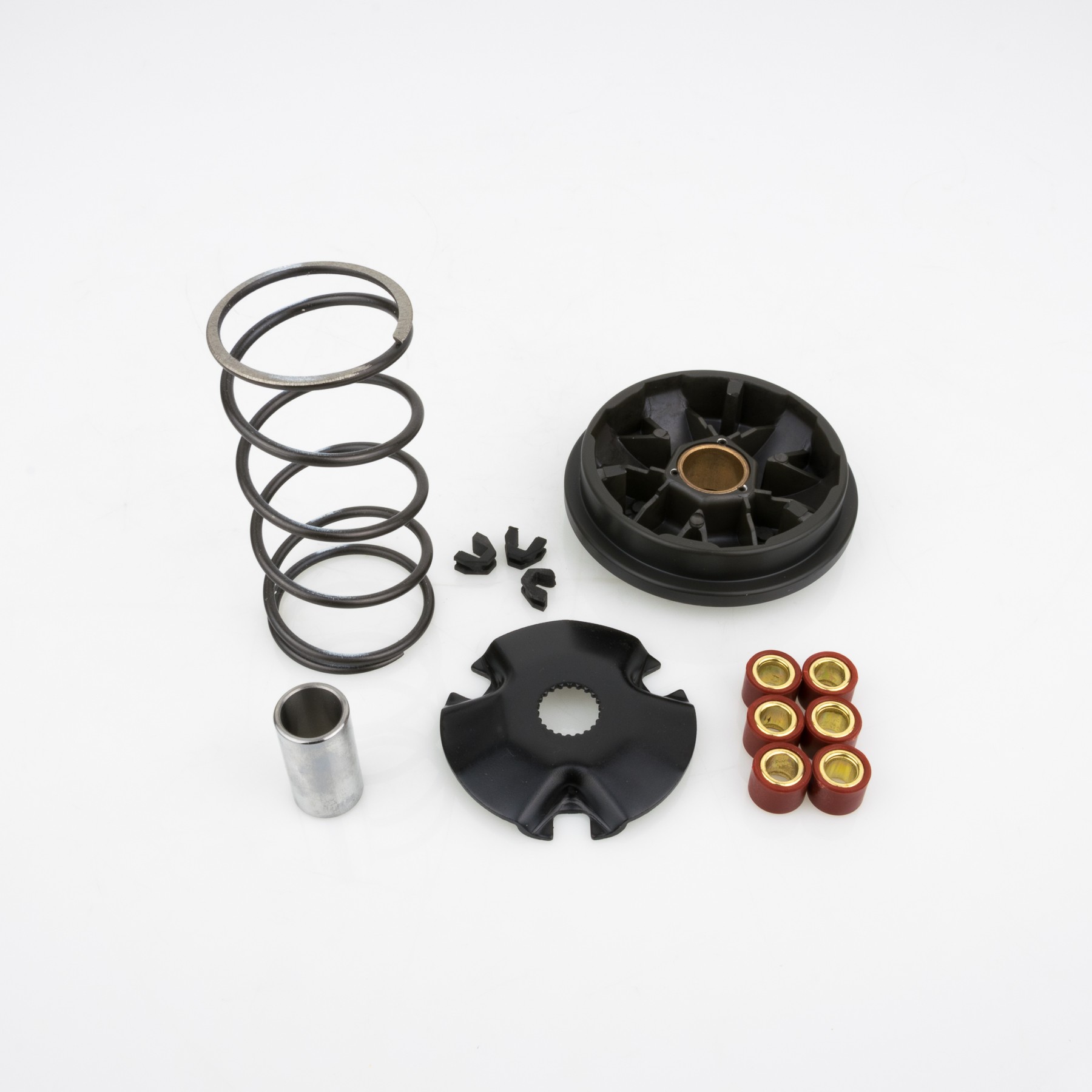 Frutto della raffinata tecnologia Pinasco, questi variatori permettono di incrementare lescursione complessiva rispetto ai componenti di serie, migliorando notevolmente la funzionalite le prestazioni degli scooter. Disponibili per tutti gli scooter da 50 a 500 cc. B-LOCK lesclusivo sistema di montaggio della bronzina di scorrimento mozzo variatore, principalmente sui variatori per maxi scooter, effettuato senza nessun tipo di deformazione della stessa. Con limpiego di questa tecnologia, oltre ad avere un perfetto accoppiamento senza rischi di rottura o fuoriuscita, la bronzina mantiene le sue dimensioni iniziali, garantendo costanza di prestazioni a caldo e nelluso intensivo, assicurando una durata nel tempo superiore anche a quella dei variatori originali. Applicazioni: Hacker 50, Hacker 50 LC, Formula 50 , Formula 50 LC, Torpedo 50 2T, Velocifero, Crosser CR1, Vamos, Address Ah 50 2T, AP 50 2T, Sepia 50 2T, Sepia 50 ZZ 2T.