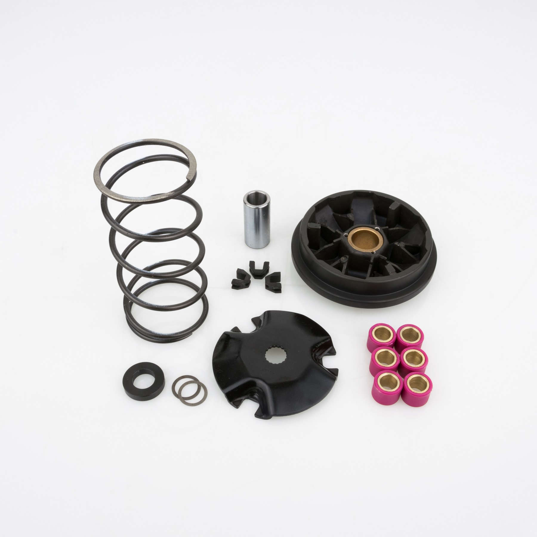 Frutto della raffinata tecnologia Pinasco, questi variatori permettono di incrementare lescursione complessiva rispetto ai componenti di serie, migliorando notevolmente la funzionalite le prestazioni degli scooter. Disponibili per tutti gli scooter da 50 a 500 cc. B-LOCK lesclusivo sistema di montaggio della bronzina di scorrimento mozzo variatore, principalmente sui variatori per maxi scooter, effettuato senza nessun tipo di deformazione della stessa. Con limpiego di questa tecnologia, oltre ad avere un perfetto accoppiamento senza rischi di rottura o fuoriuscita, la bronzina mantiene le sue dimensioni iniziali, garantendo costanza di prestazioni a caldo e nelluso intensivo, assicurando una durata nel tempo superiore anche a quella dei variatori originali. Applicazioni: Amico 50, Area 51, Gulliver 50, Gulliver 50 LC, Rally 50, Rally 50 LC, Scarabeo 50 2T, Sonic 50, Sonic 50 LC, SR 50-1993, SR 50-1994, SR 50 Netscaper LC, SR 50 Racing LC, SR 50 Replica LC, SR 50 Stealth LC, SR 50 WWW, Carosello 50, 491 Gt, 491 Sport LC, K2 50, K2 50 LC, Naked 50, Pepe 50, Ark 50, Ark 50 LC, Chrono, Eikon 50 LC, Quadra, Tempo, Ax, Gz, Big Wheel 50 2T, Gsp 50, Sr 50, Dragster 50 LC, Pista 2, Scoop, Yankee, Centro 50 2T, Ciak 50 , F10, F12 Digit Kat 50 LC, F12 Digit Kat 50 LC Euro 2, F12 Phantom 50, F12 Phantom 50 LC , F12 R LC Euro 2, F15 Firefox LC, Yesterday, Booster 50 Euro 0 1, Booster 50 Naked Euro 2, Booster 50 NG Euro 0 1, Booster 50 NG Euro 2, Booster 50 Spirit Euro 0 1, Evolis, Fizz, Flipper, Forte, Hot Champ, Mach G 50, Mach G 50 LC, Nitro 50, Ovetto 50, Rocket, Rocket 50 Euro 2, Sorriso 50 2T 1996, Stunt 50 2T Euro 0 1, Stunt 50 2T Euro 2, Target 50 2T, Aerox 50 Euro 0 1, Aerox 50 Euro 2, Axis 50 2T, Breeze 50 2T, BW'S 50 Euro 0 1, BW'S 50 NG Euro 0 1, BW'S 50 NG Euro 2, BW'S 50 Original, CRZ 50 2T, Jog 50 , Jog 50 ER , Jog 50 R , Jog 50 RR, Jog 50 Z, Neo's 50 2T, Slider 50 2T, Spy 50 2T, Vino 50 2T, Why 50 2T, Zest 50 2T, Zuma 50 2T.