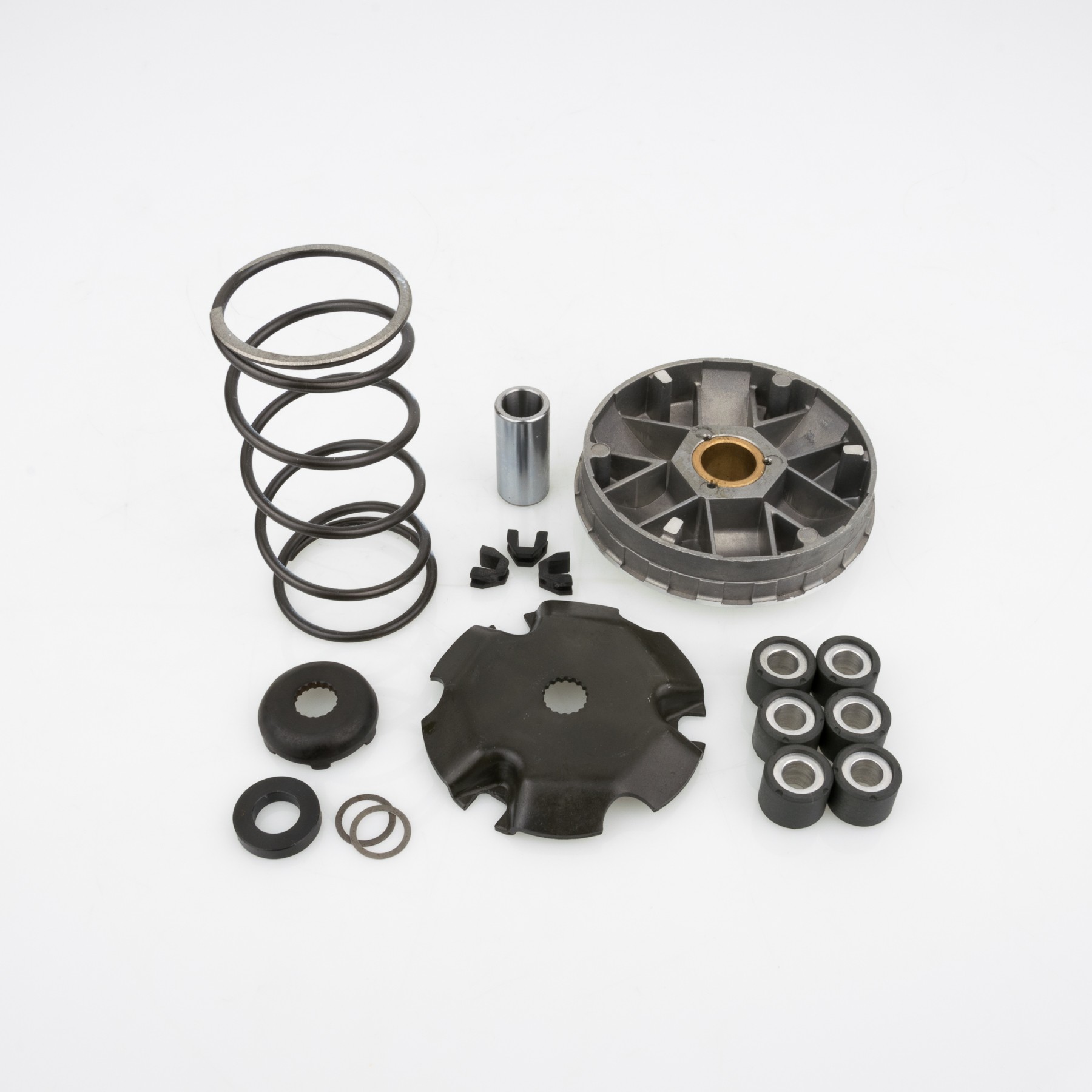 Frutto della raffinata tecnologia Pinasco, questi variatori permettono di incrementare lescursione complessiva rispetto ai componenti di serie, migliorando notevolmente la funzionalite le prestazioni degli scooter. Disponibili per tutti gli scooter da 50 a 500 cc. B-LOCK lesclusivo sistema di montaggio della bronzina di scorrimento mozzo variatore, principalmente sui variatori per maxi scooter, effettuato senza nessun tipo di deformazione della stessa. Con limpiego di questa tecnologia, oltre ad avere un perfetto accoppiamento senza rischi di rottura o fuoriuscita, la bronzina mantiene le sue dimensioni iniziali, garantendo costanza di prestazioni a caldo e nelluso intensivo, assicurando una durata nel tempo superiore anche a quella dei variatori originali.
