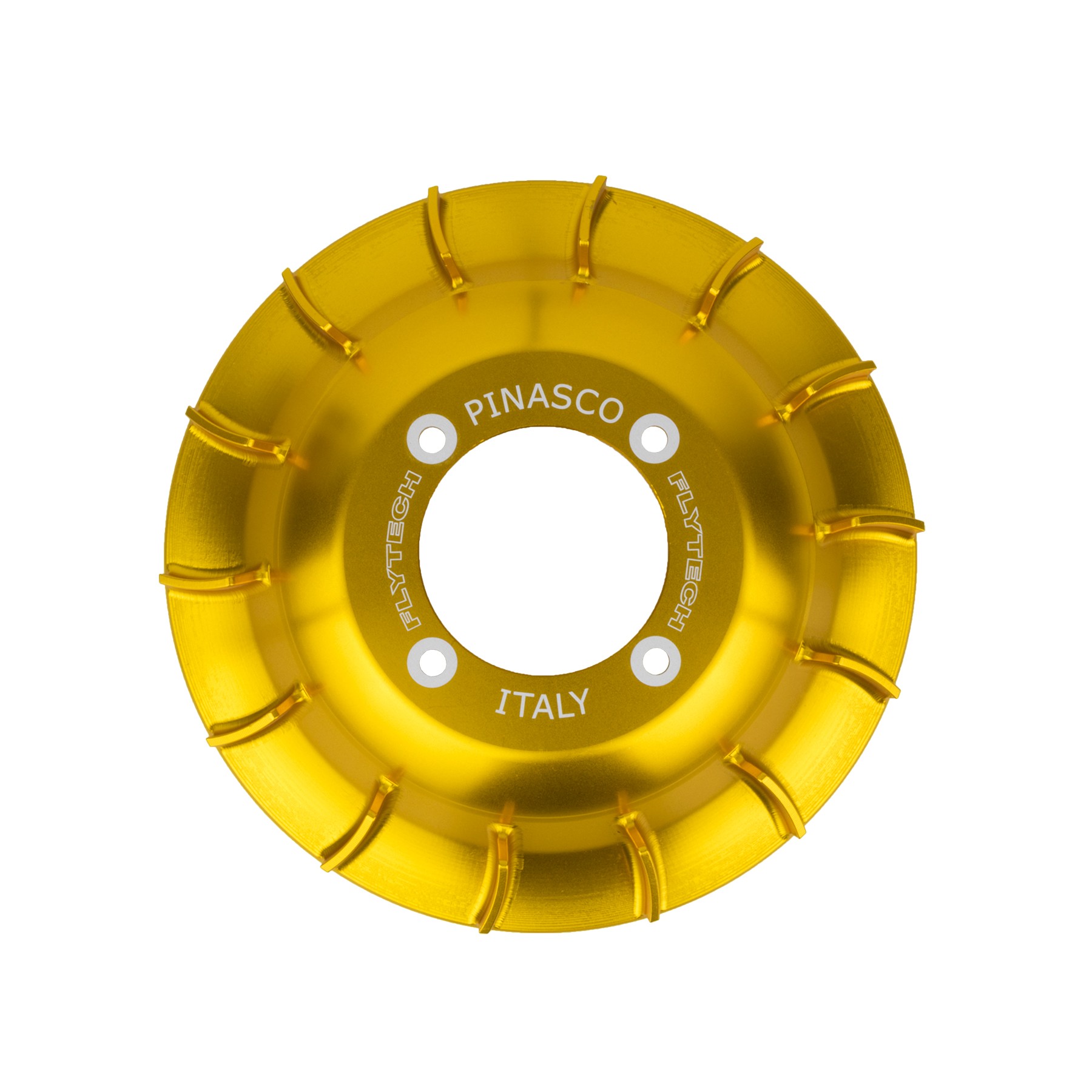 Ventola in alluminio anodizzato ricavata dal pieno, un prodotto sia racing che estetico dedicato ai preparatori più esigenti. Rispetto alla ventola in plastica è stato ridotto il numero delle alette per una minore resistenza all'aria, il profilo della ventola è stato calcolato per avere il massimo rendimento fluidodinamico, l'effetto di deformazione agli alti regimi di rotazione è stato eliminato grazie alla struttura rigida.